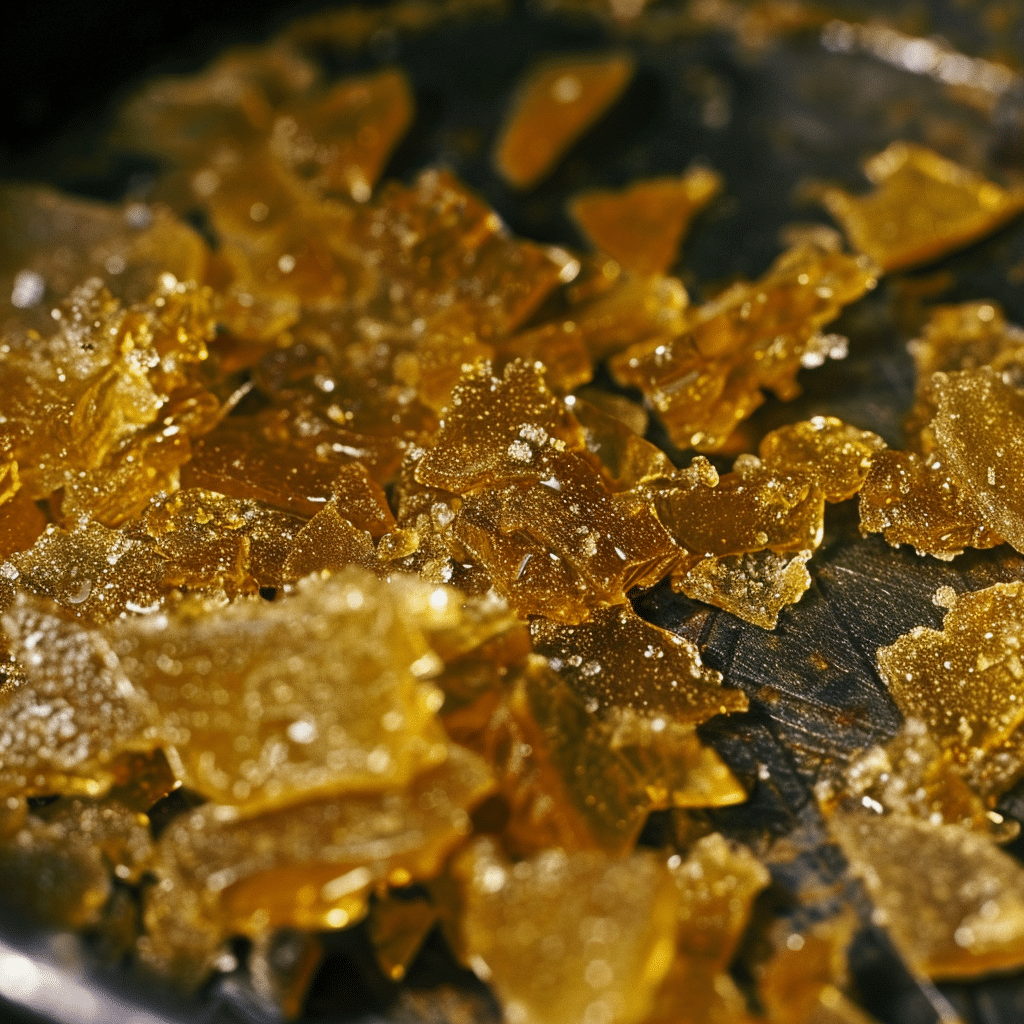 - Shatter: Este extracto de marihuana es extremadamente puro y tiene una apariencia similar a un trozo de vidrio coloreado o un caramelo duro. Es conocido por su alta concentración de cannabinoides.